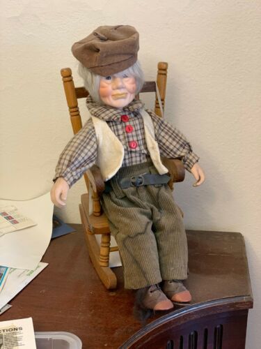 Antique Old Man in Wooden Rocking Chair