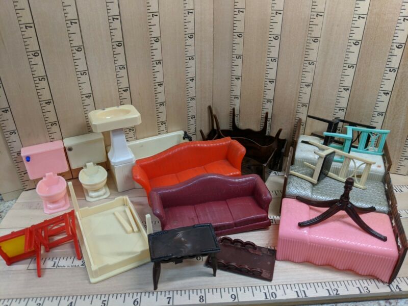 Title (ebay affiliate link): VTG LOT Renwal Tin Dollhouse Miniature Plastic Furniture For Parts Ideal Marx