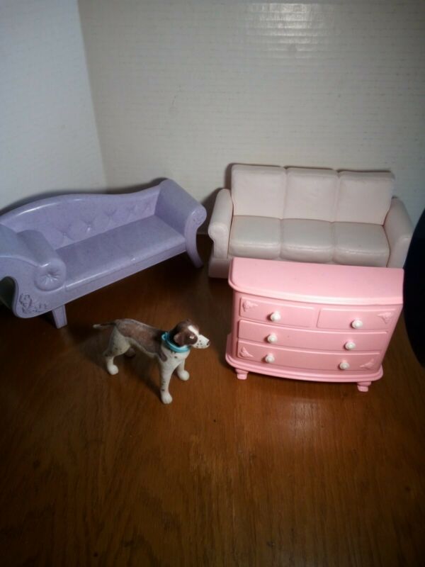 VINTAGE BARBIE FURNITURE LOT W/ DOG MATTEL HTF dream house accessories couch +