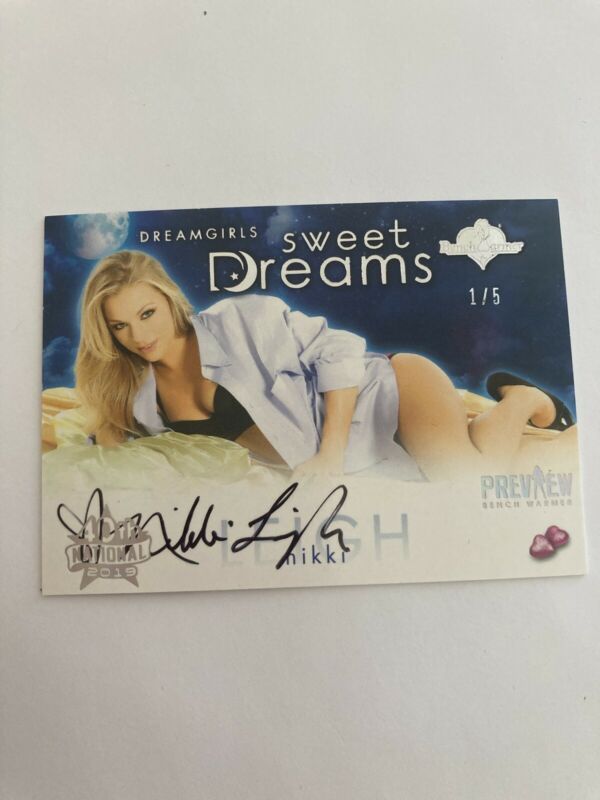 Title (ebay affiliate link): 2019 BENCHWARMER 40th NATIONAL SWEET DREAMS PROMO AUTO /5 Nikki Leigh