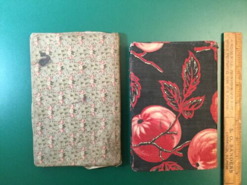 2 Antique School Books Original Cloth Flower Speller Apple Arithmetic