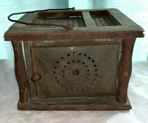 Title (ebay affiliate link): Early Primitive Antique Wood and Punched Tin Foot Warmer