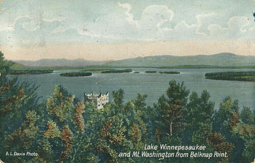 Title (ebay affiliate link): LAKE WINNEPESAUKEE AND MT. WASHINGTON FROM BELKNAP POINT. NH. KIMBALL CASTLE.