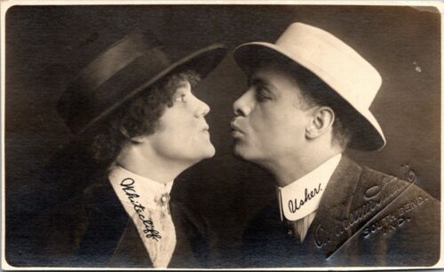 Title (ebay affiliate link): Real Photo Postcard Couple Kissing in a South Bend, Indiana Photo Studio~132691