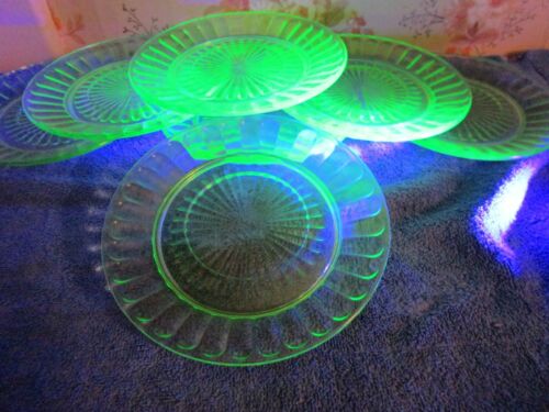 Lot Of 7 Green Depression Glass 6" Plates