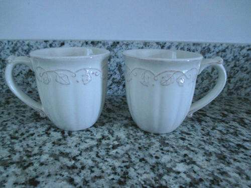 Longaberger Vintage Vine Cream Pottery Set of Two Mugs