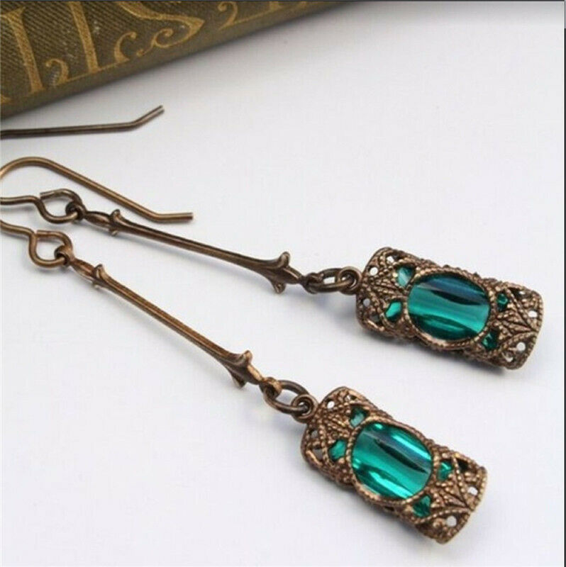 Title (ebay affiliate link): Women Antique Gold Natural Gemstone Inlay Light Green Sapphire Earrings Jewelry