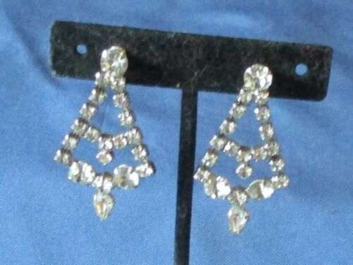 Vintage Silver-Tone Metal Claw Set Clear Rhinestone Dangle Screw Fit Earrings