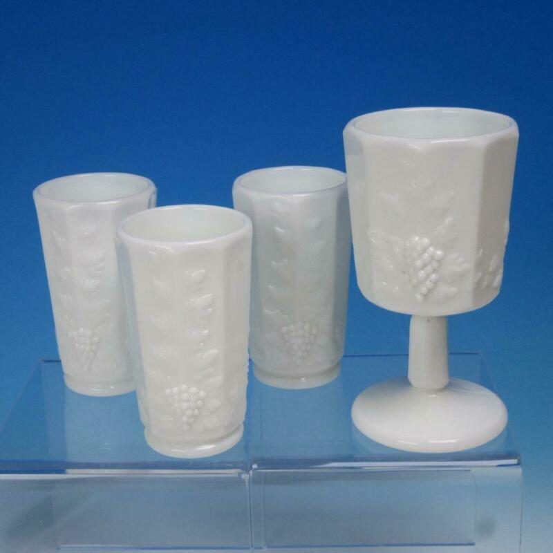 Title (ebay affiliate link): Westmoreland WG Milk Glass Paneled Grape - 3 Juice Tumblers, 1 Footed Goblet