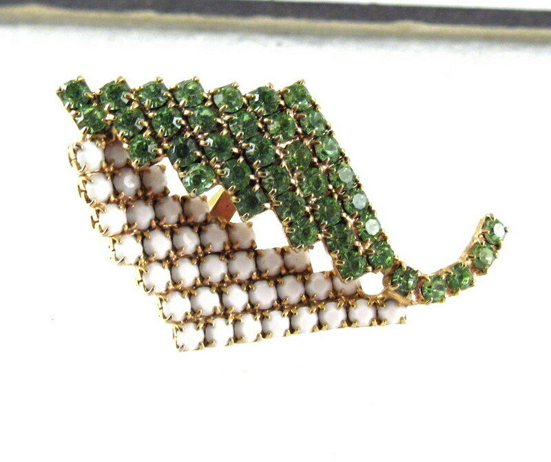 Vintage Milk Glass Rhinestone Brooch Earring Set