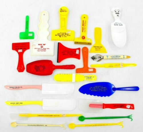 Title (ebay affiliate link): VINTAGE ADVERTISING WINDSHIELD SCRAPERS AND UTENSILS LOT SPOONS SCOOPS SPATULAS