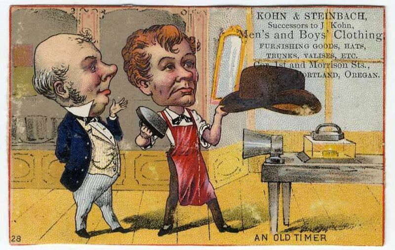 Title (ebay affiliate link): Portland OR KOHN & STEINBACH Men Boys Clothing HATS Victorian Trade Card HATS