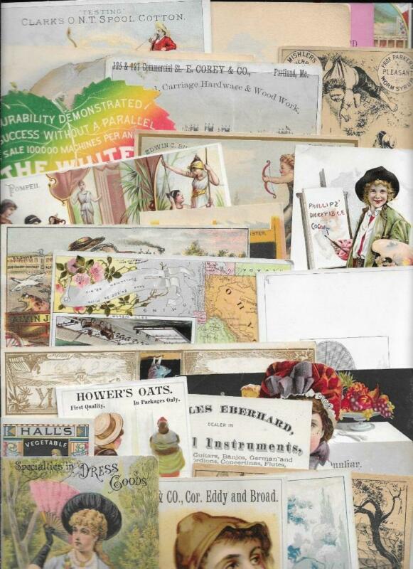 1890 Lot #5 Trade Cards 25 MIX LOT OATS PAINT MUSIC PERFUME RANGES CARPENTER