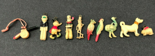 Lot 10 Mickey Mouse Popeye Planters Peanut Bird Cracker Jack Charm Celluloid VTG