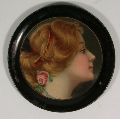 Title (ebay affiliate link): ca1907 AMERICAN ART WORKS TIN LITHOGRAPH ADVERTISING TIP TRAY BEAUTIFUL WOMAN