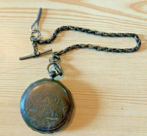 Title (ebay affiliate link): Antique Engraved Sterling Silver Key-Wind Pocket Watch with Silver Chain & Key