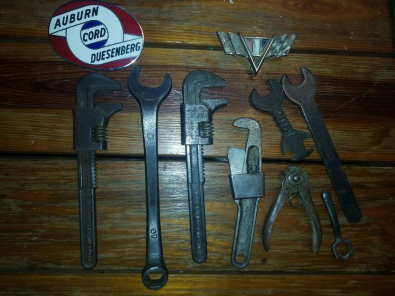 Title (ebay affiliate link): Lot of vintage ford & Stanley wrenches misc tools and car emblems