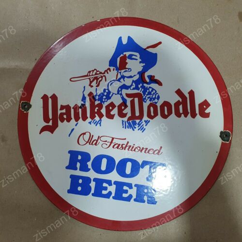 Title (ebay affiliate link): YANKEE DOODLE ROOT BEER VINTAGE PORCELAIN SIGN 12 INCHES ROUND