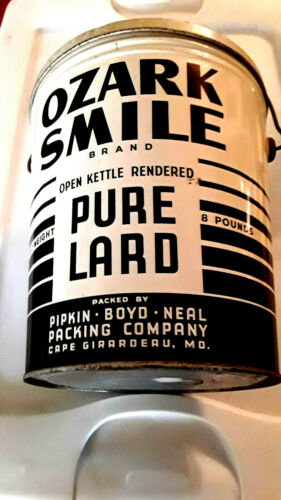 Title (ebay affiliate link): RARE 8 pound OZARK SMILE Pure LARD Tin Pail. CAPE GIRARDERU, MO.PIPKIN-BOYD-NEAL