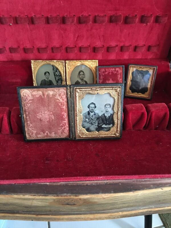 Title (ebay affiliate link): Victorian Lady Daquerreo Type Photo Velvet Leather Gold Guilded Frames Group