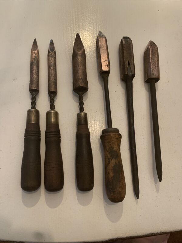Title (ebay affiliate link): ANTIQUE VINTAGE UNIQUE PLUMBING SOLDERING COPPERS IRONS (3) W/ Round Heads.