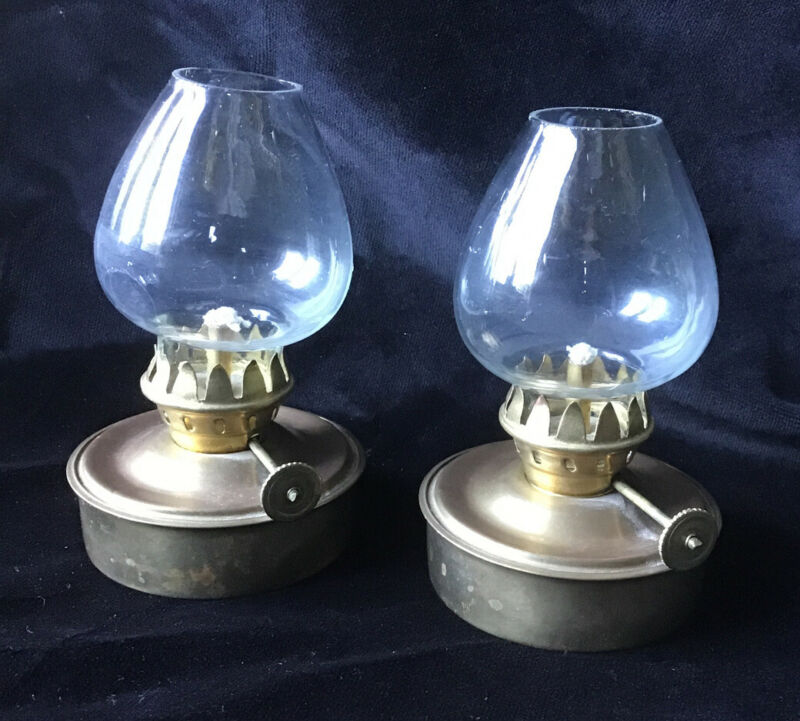 Vintage Pair Of Nursery Miniature Brass Oil Lamp with With Glass Chimneys