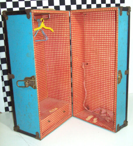 Title (ebay affiliate link): 17"x10"x9" 1940"CASS TOYS Metal Doll Trunk~Travel Case 3 Metal Hangers Some Rust