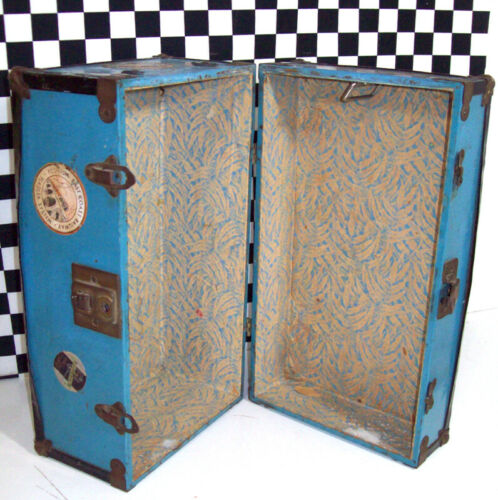 Title (ebay affiliate link): 14"x8"x7" Vintage DOLL TRUNK Metal & Wood Some Rust Wear Handle Broken~~~~