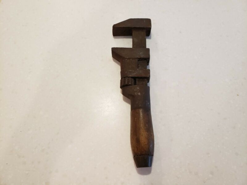 Title (ebay affiliate link): VINTAGE ADJUSTABLE WRENCH RAILROAD PIPE WRENCH OLD ANTIQUE TOOL WOOD HANDLE