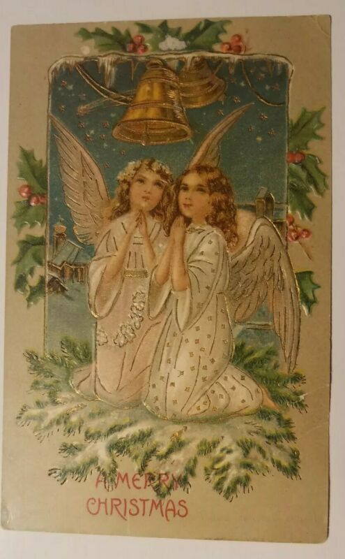 Title (ebay affiliate link): Vintage 1909 Christmas Postcard-Two Young Angels Praying w/ Bells & Holly