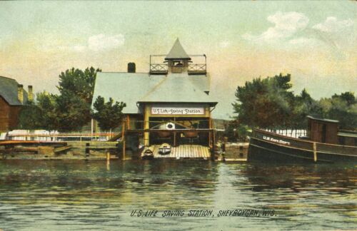Title (ebay affiliate link): U.S. Life Saving Station, Sheboygan, Wisconsin with U.S. Eng''r Dep''t Tug