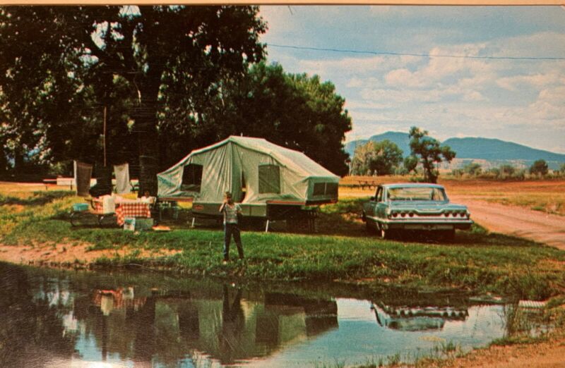 Postcard with 1963 Chevrolet at Spearfish Valley campground South Dakota. posted