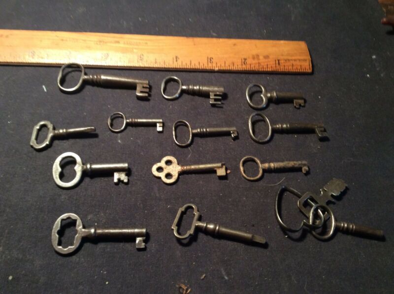 Title (ebay affiliate link): LOT OF 13 ANTIQUE SKELETON, FURNITURE, BARREL, CABINET AND OLD LOCK KEYS
