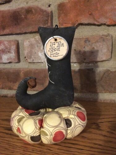 Title (ebay affiliate link): Primitive OOAK Halloween Witch Boot Pin Keep Shelf Sitter/Cupboard Tuck w/ tag