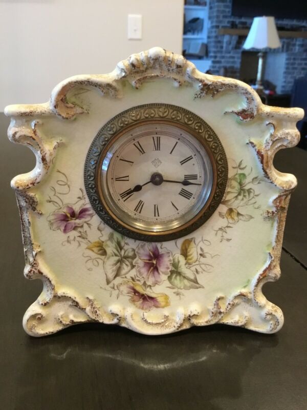 Title (ebay affiliate link): Antique Brambling Ansonia Porcelain Flowers Shelf Mantel Clock Vintage Works C90