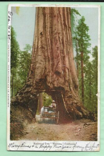 Title (ebay affiliate link): WAWONA TUNNEL TREE. MARIPOSA GROVE. YOSEMITE, CALIFORNIA. UNDIVIDED BACK. 1904.