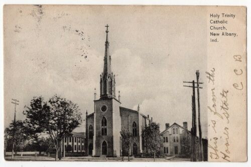 Title (ebay affiliate link): 1907 Postcard Catholic Church New Albany, Indiana IN Unusual Cancel Postage Due