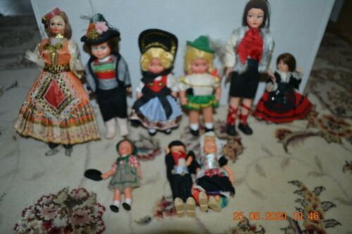 Antique Vintage Lot Of 9 Souvenir Dolls