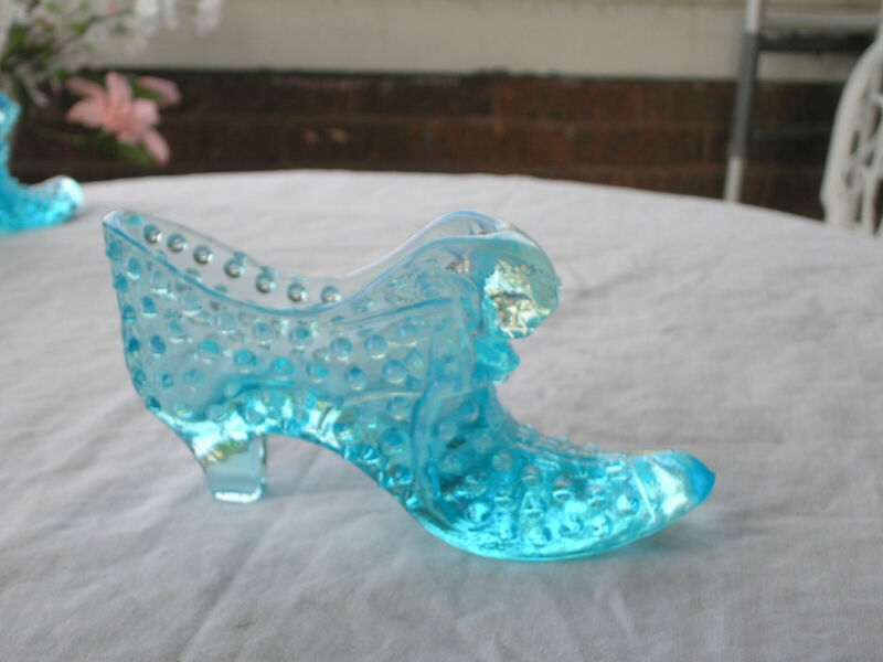 Title (ebay affiliate link): Vintage Fenton Blue Opalescent Glass Hobnail Cat Head Slipper Shoe