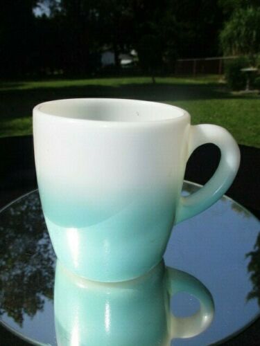 Title (ebay affiliate link): CUP MUG FIRE-KING MILK GLASS WHITE AQUA BLUE BENDED MID CENTURY GLASSWARE