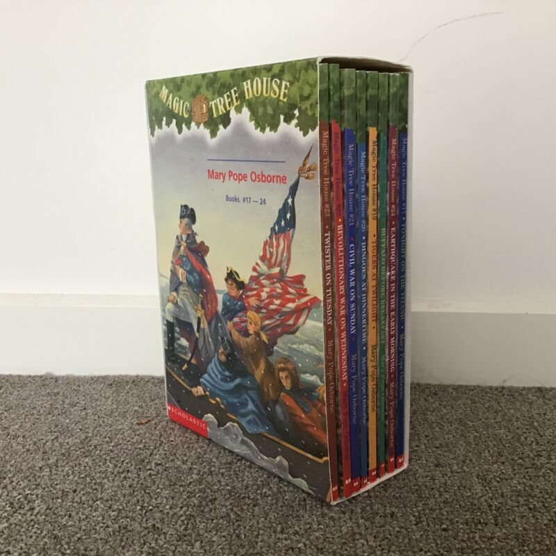 Title (ebay affiliate link): Magic Tree House Scholastic Books by Mary Pope Osborne Books 17 to 24 #404