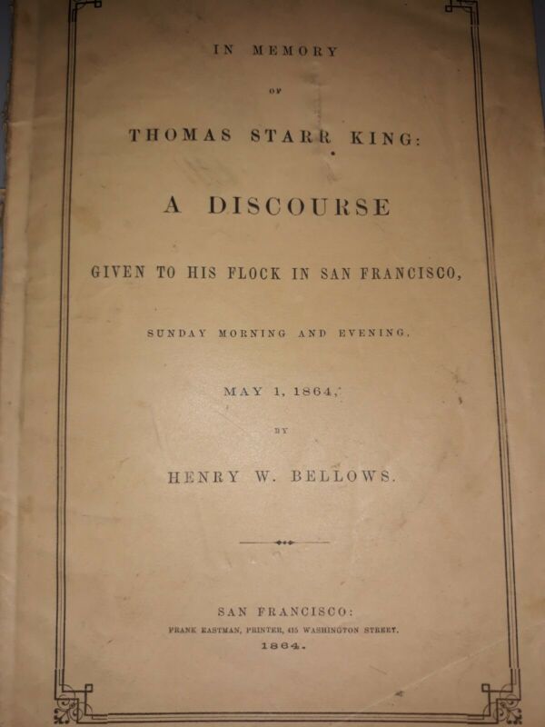 Title (ebay affiliate link): Memory Of Thomas Starr King 1864 San Francisco Priest