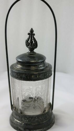 Title (ebay affiliate link): Antique Silver Plate Etched Design Clear Glass Victorian Pickle Castor Jar