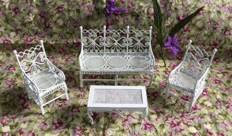 Doll House Furniture White Wire Wrought Garden/ Patio 4 Piece Set