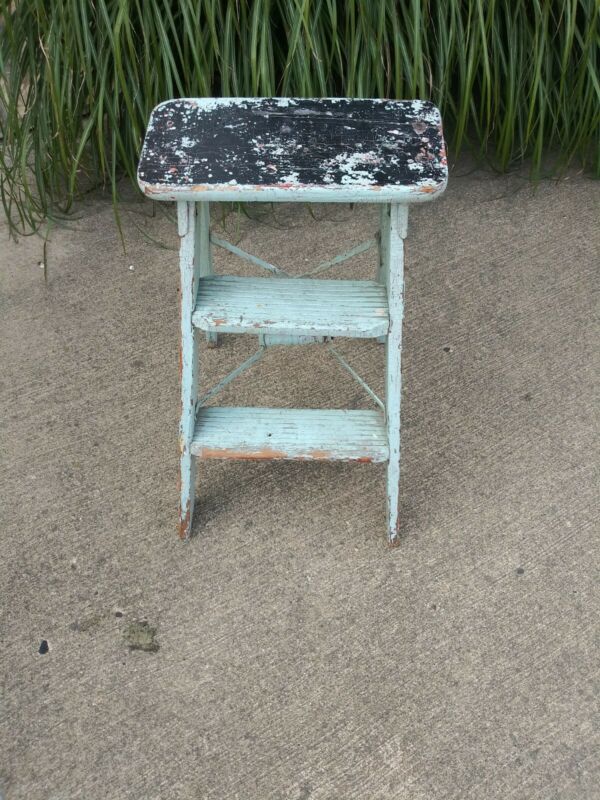 Title (ebay affiliate link): Antique 3 Step Stool Vintage Primitive Folding Wood Ladder Stand
