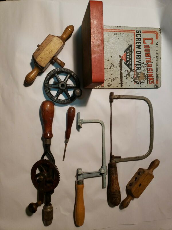 Title (ebay affiliate link): Vintgae lot of Woodworking tools Miller falls tools sign Hand Drill and MORE!