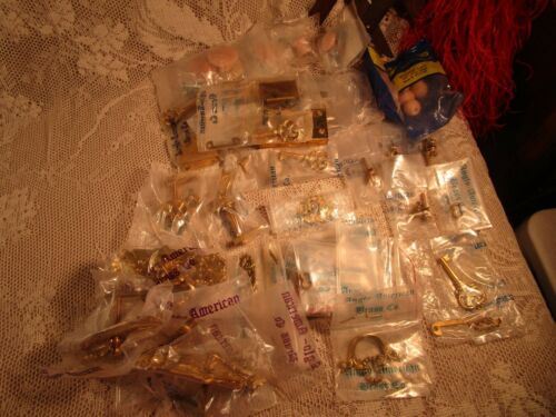 28 PIECES BRASS HARDWARE + VARIOUS WOODEN KNOBS