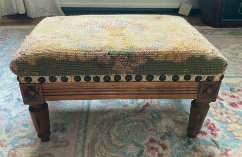 Title (ebay affiliate link): ANTIQUE FRENCH LOUIS XVI STYLE CARVED WOOD FLORAL NEEDLEPOINT FOOTSTOOL