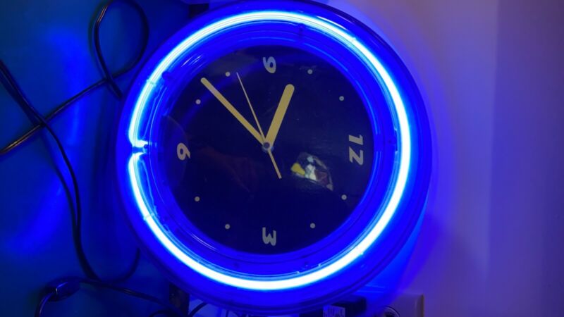 Title (ebay affiliate link): BLUE NEON CLOCK vintage lights up used excellent condition