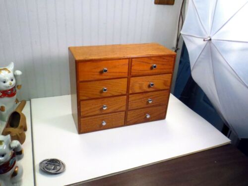 Vintage Mid Century Oak 8 Drawer Hardware Apothecary Nuts Bolts Storage Cabinet
